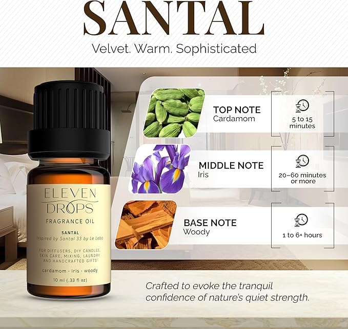 - Santal-Inspired Luxury at Home - Experience the timeless sophistication of Santal aroma — a warm, woody blend of sandalwood, cedar, and cardamom that fills any room with elegant serenity. Perfect for creating calm, luxurious spaces.