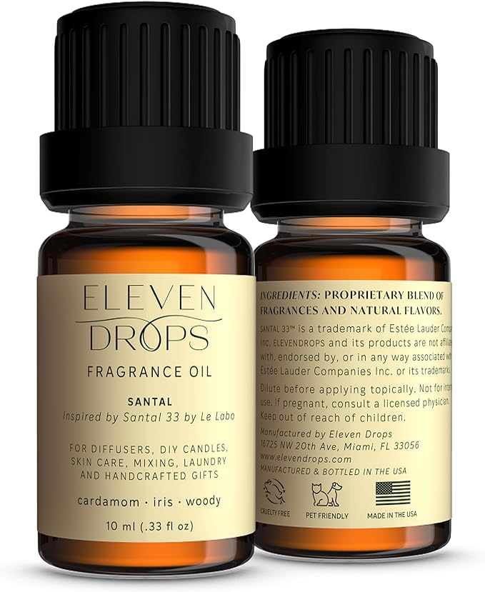 Santal Aroma Fragrance Oil – Essential Oil Blend for Diffusers, Candles & Soap Making, Mixing, Long Lasting Scent, Pet Friendly, Made in USA, Amber Glass Bottle, IFRA Compliant – 10 ml