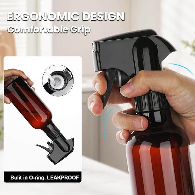 - HEAVY DUTY CONTINUOUS SPRAY BOTTLES: Our plastic continuous sprayers are crafted from high-quality material, ensuring for daily use with cleaning solutions, hair products, or plant care. These empty spray bottles are lightweight and shatterproof, ideal for indoor/outdoor use.