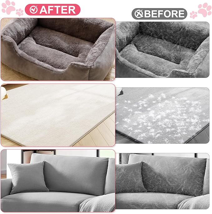 - Electrostatic Hair Removal Technology:Our pet hair removal gloves use strong electrostatic suction to efficiently clean pet hair, cotton wool, and human hair by simply sweeping back and forth. Compared to traditional combs or hair rollers that require repeated operation, this glove enhances adhesion through friction and static electricity, completely cleaning stubborn hair.