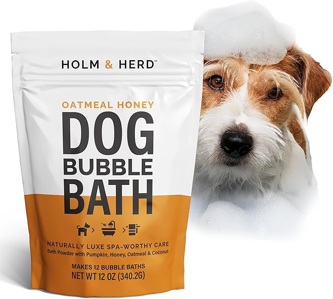 - Soothing Oatmeal & Honey Bubble Bath – A gentle dog shampoo alternative that hydrates, softens, and relieves dryness with rich, playful bubbles. Perfect for sensitive skin.