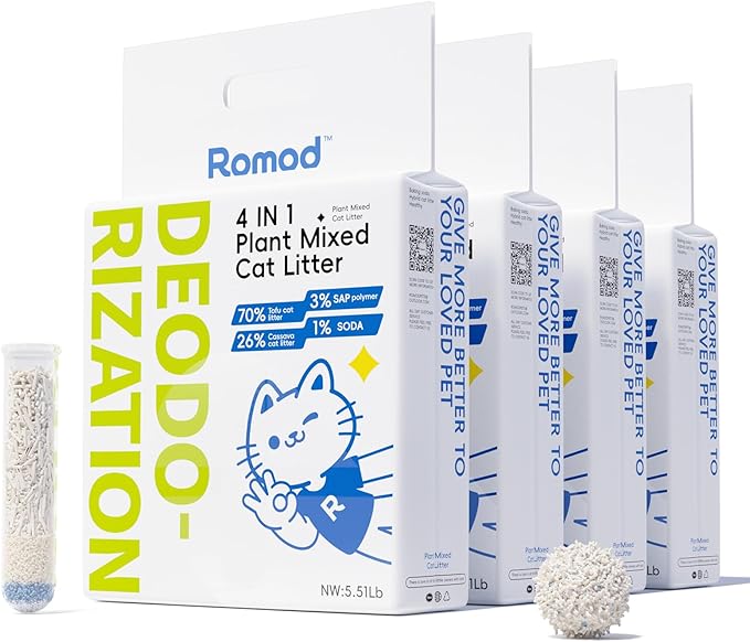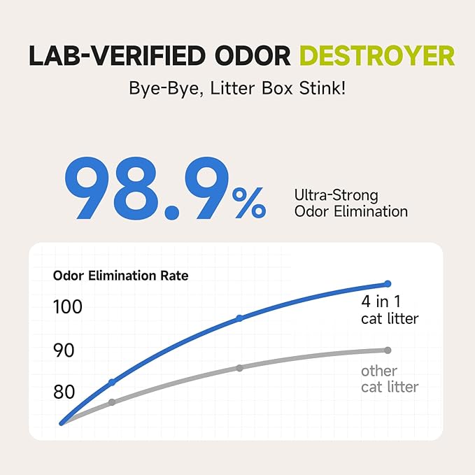 - 4-in-1 Premium Multi-Ingredient - A perfect combination of tofu litter, cassava litter, SAP (super absorbent polymer), and baking soda, offering natural and efficient performance.