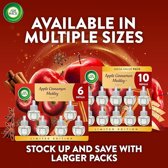 Air Wick Plug In Scented Oil Refill, Infused with Essential Oils, Plug In Air Fresheners for Home, Fall Scent, Fall Décor, Apple Cinnamon Medley, 4 ct