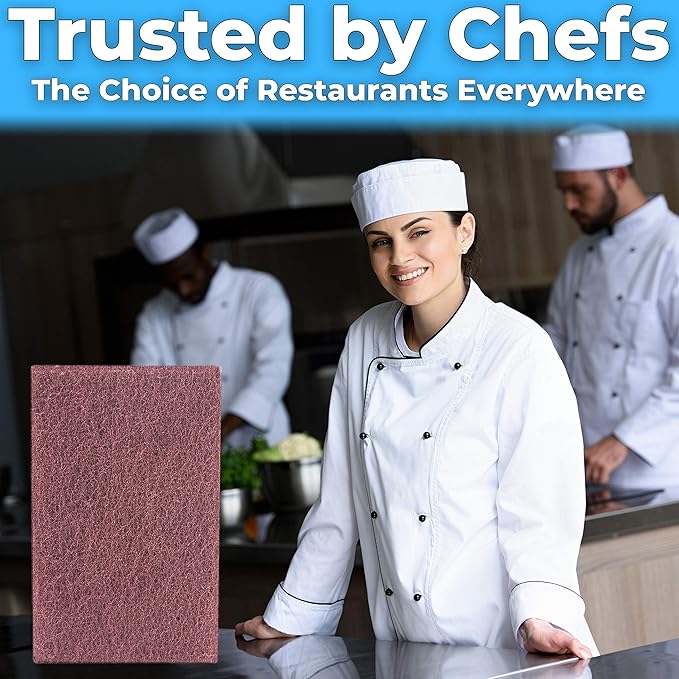 - TRUSTED BY RESTAURANT PROFESSIONALS EVERYWHERE. Chefs and cooks love our scouring pads for their heavy-duty cleaning. Our scourers clean all your stainless steel skillets, pots, pans, grills and griddles with professional power!