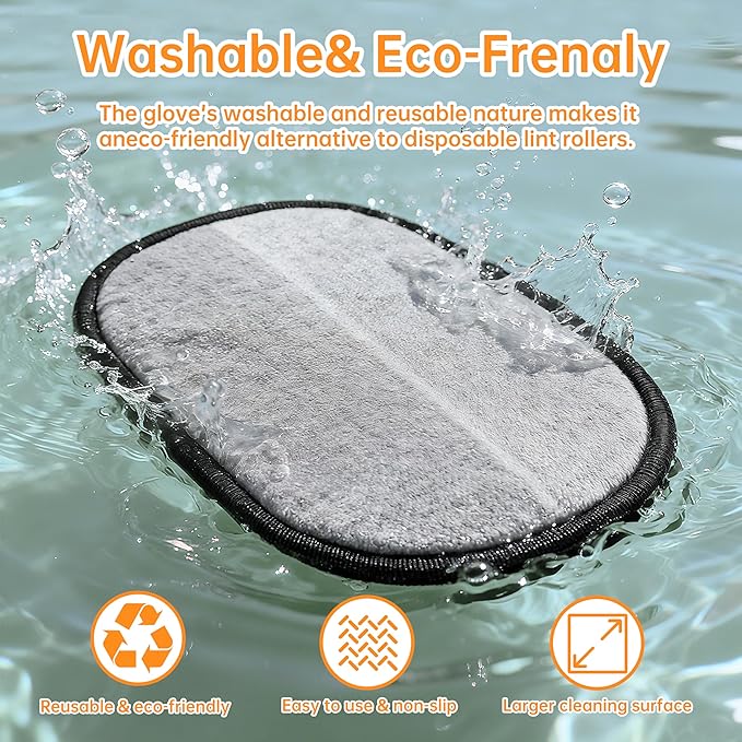 - 【Reusable & Easy to Clean】Our pet hair removal glove are washable and reusable,making them a sustainable choice that saves you money and reduces environmental impact. Say goodbye to wasteful sticky sheets ant lint roller! Cleanup is a breeze—just rinse with clean water.