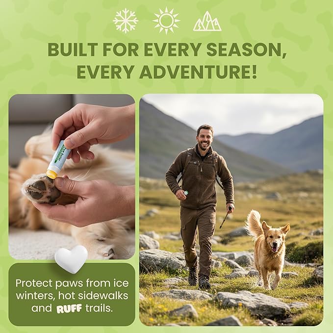 - Moisturizes And Soothes -- Helps to heal and protect dry, rough, chapped, cracked paws. Paws can become tender and raw from extreme weather conditions. A protective layer protects your puppy's paw pad, nose, and bare skin. Dog Mushers will love our dog paw moisturizer. The perfect gift this holiday season.