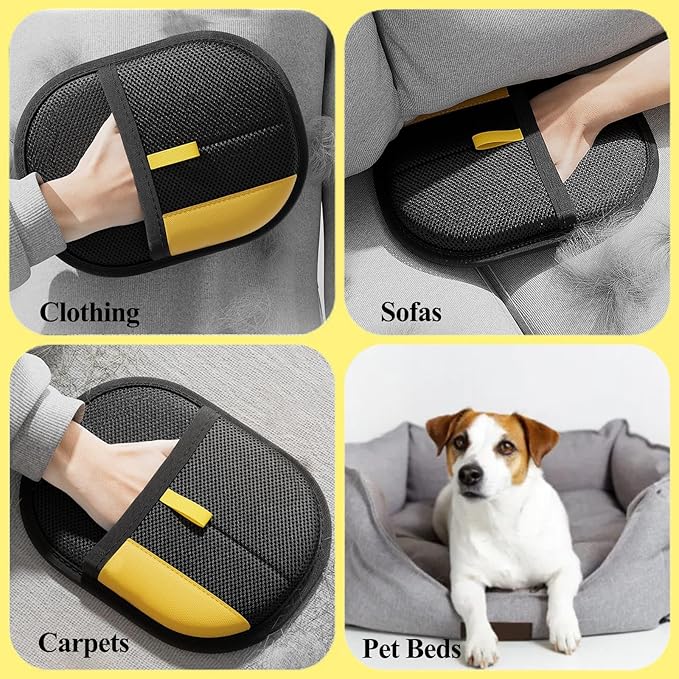 - 【Works on All Surfaces】From sofas and carpets to car seats and clothing—this versatile pet hair removal glove handles it all. Whether you need a cat hair remover or a dog hair remover, just glide your hand over the fabric and see the hair disappear. Perfect for quick clean-ups anywhere!