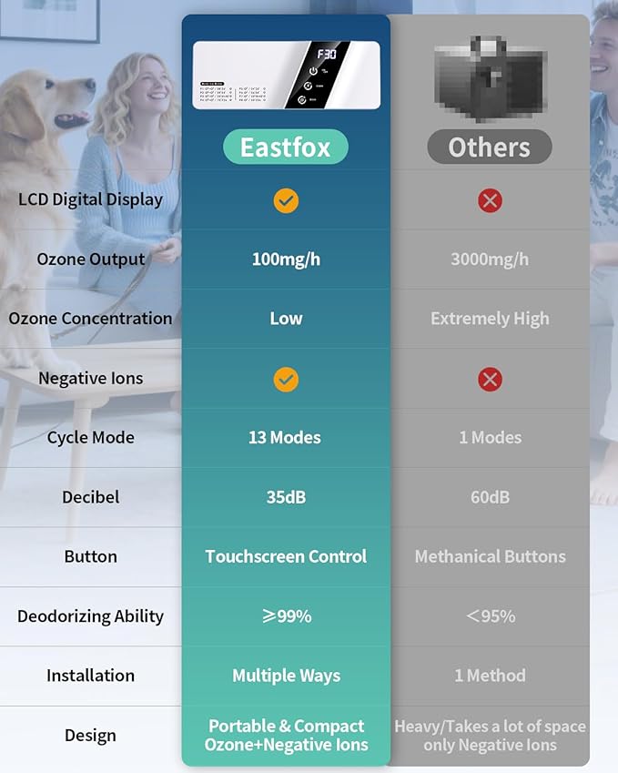 - Eliminate Pet Odors: Our advanced negative ion generator with 13 working modes targets and neutralizes the pet smells at the source. The ozone odor eliminator features for fast deodorization. Welcome guests into a home that smells consistently fresh and clean, providing a healthier environment for you and your beloved pets