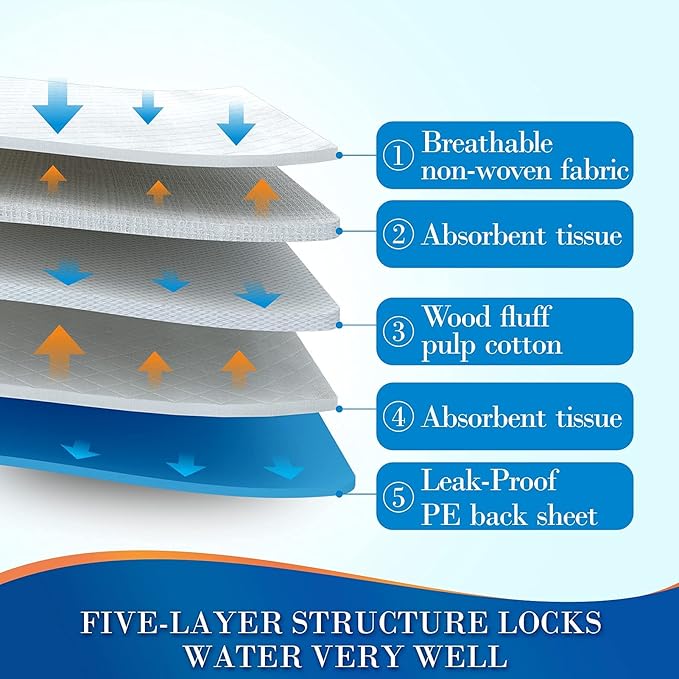 - Large Size and Super Absorbency:These disposable bed pads size in 23"x36"(60x90cm).Thicken pee pads with gelling polymer can lock in liquid quickly and keep it dry. 50/100/150/300 count are available to meet different needs