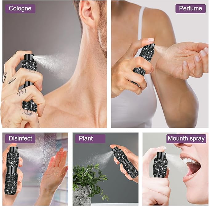 - ♠️【Easy to Carry】The 8ml travel size atomizer spray bottle is designed for dispensing perfume,cologne,aftershave or any other favorite liquid.Refillable and ultra-portable, it fits seamlessly in your purse or pocket, ensuring no drips or leaks during your travels or outings.