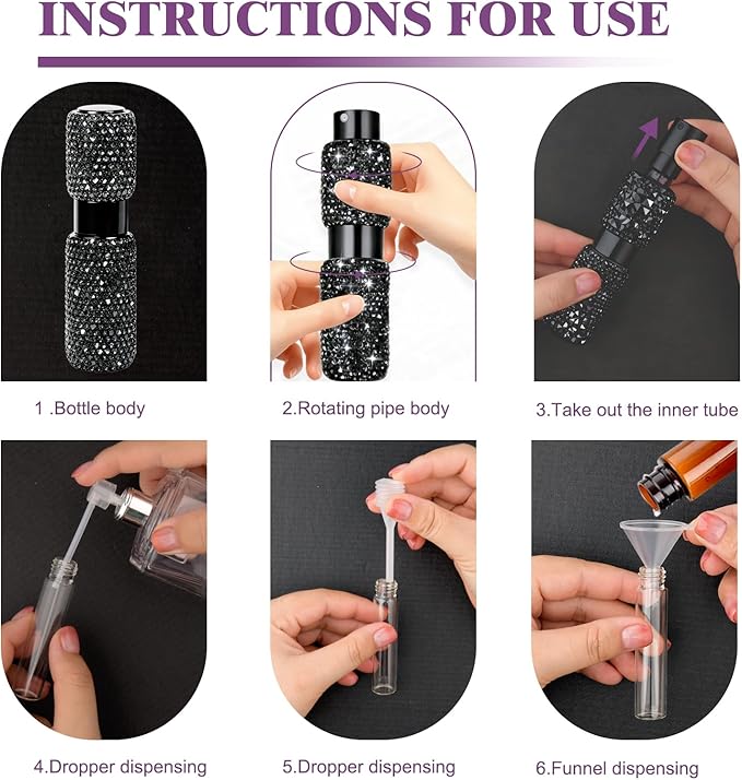 - ♠️【Package Included】Your purchase includes one refillable perfume bottle, one bag,one funnel, one dropper,and one transfer tool.Select accessories as needed for seamless filling and transferring of your cosmetics. Our customer support team is available 24/7 for any inquiries.