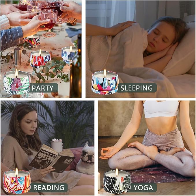 - 🎁【Candle Long Lasting】Soy wax content 2.5 oz per each, 15 to 20 hours long lasting time. A total combustion of 480 to 640 hours.Providing scented, creating mood enhancing atmospheres.